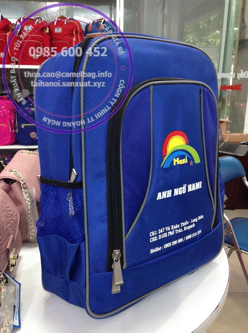 Xưởng nhận sản xuất balo học sinh, balo trung tâm anh ngữ, balo trung tâm ngoại ngữ.