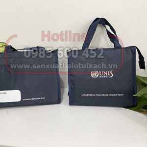 Sản xuất túi đựng cơm giữ nhiệt in logo trường Unis