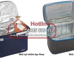 - Bên trong túi là lớp cách nhiệt với nhiều chất liệu khác nhau: mút xốp bạc cách nhiệt, mút sợi nhôm bạc Peva, vải cách nhiệt alu